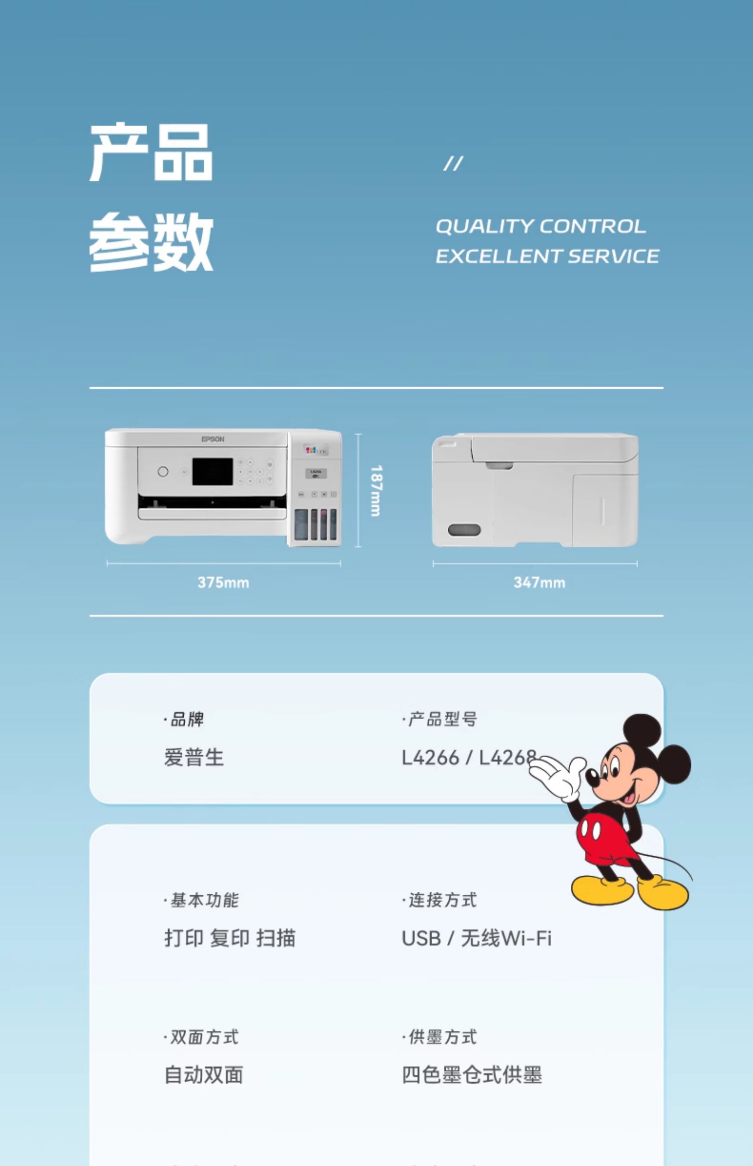 爱普生打印机自动双面家用小型4266/4268/4263彩色打印复印一体机官方墨仓办公手机无线